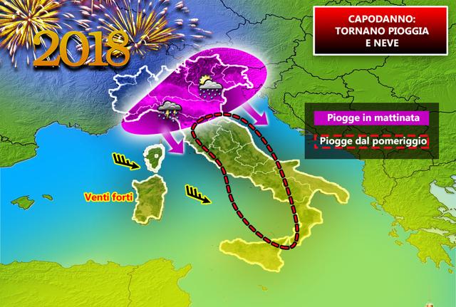 Previsioni meteo: piogge e maltempo in arrivo per San Silvestro e CapodannoVenerdì, 29 dicembre 2017Previsioni meteo Capodanno: veloce perturbazione atlantica. Nuova fase di maltempo dal 6 gennaio. Previsioni meteo Italia