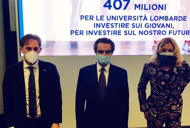 Università, 407 mln ad atenei lombardi: "Investimento su giovani e futuro"Giovedì, 10 dicembre 2020Negli ultimi tre anni Regione Lombardia ha investito 407 milioni per gli atenei lombardi, anche con una serie di iniziative per il diritto allo studio