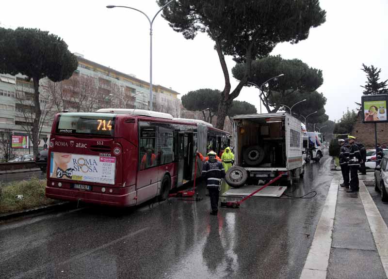 Per consentire i soccorsi e i rilievi, viale dei Romagnoli è stato temporaneamente chiuso al traffico nel tratto compreso tra via Andrea da Garessio e via Giuseppe Bernardo Gambaro, luogo dell’incidente che ha coinvolto un autobus della linea Atac 04B e una Fiat 500.