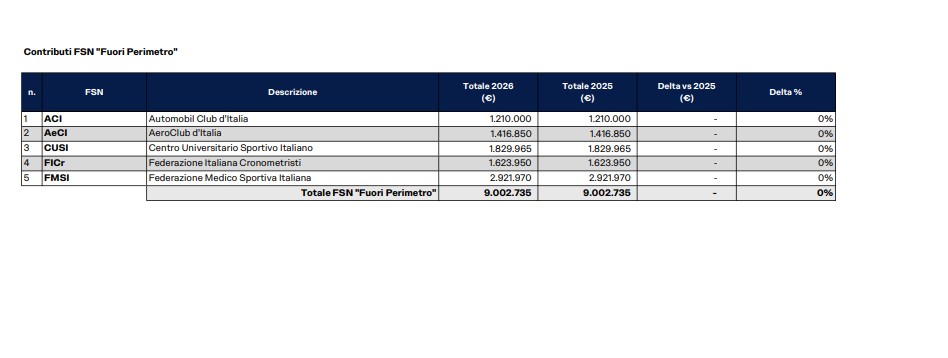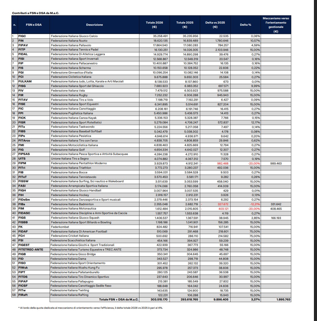 Su questi principi si fonda l’assegnazione dei 344,4 milioni di euro agli Organismi Sportivi per il 2026, in linea con lo scorso anno, deliberata dal Consiglio di Amministrazione di Sport e Salute in piena coerenza con gli indirizzi del Ministro per lo Sport e i Giovani, Andrea Abodi. Una scelta chiara: orientare le risorse pubbliche verso chi genera valore.