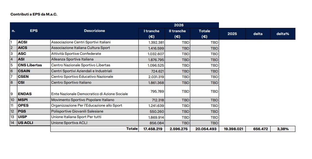 MaC, risorse finanziarie del governo per gli organismi sportivi- criteri di assegnazione: LEGGI E SCARICA IL DOCUMENTO