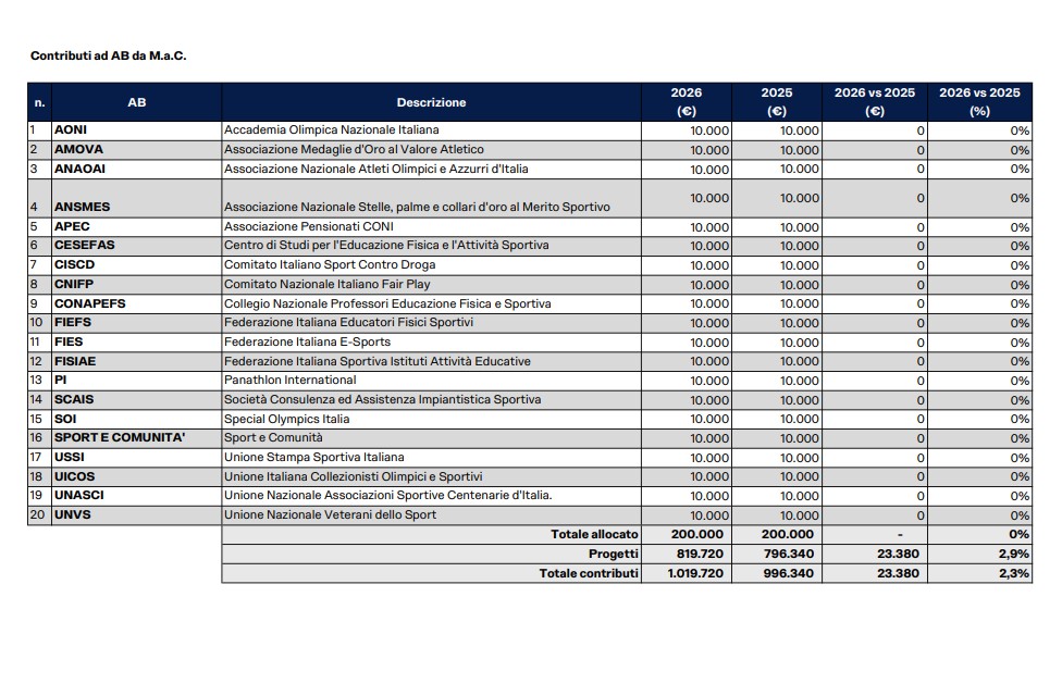 Più giovani e anziani sportivi, dalla scuola alla prevenzione della salute. Più sostenibilità, maggiore efficienza gestionale e risultati sempre più competitivi a livello internazionale. Uno sport capace di dare risposte concrete, tempestive e misurabili ai bisogni reali dei cittadini. È il frutto di un percorso avviato nel 2022 insieme a Federazioni Sportive Nazionali, Enti di Promozione Sportiva, Discipline Sportive Associate, Gruppi Sportivi Civili e Militari ed Associazioni Benemerite: obiettivi ambiziosi, un vero cambio di paradigma in cui l’aumento delle persone che praticano attività fisica diventa il motore dello sviluppo dell’intero sistema.
